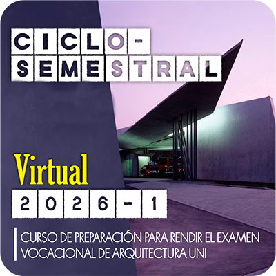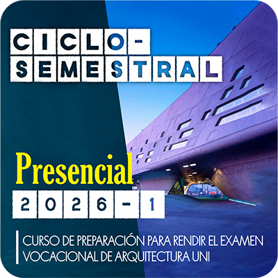 CICLO SEMESTRAL PRESENCIAL, es un curso de preparación exclusiva para rendir el Examen Vocacional de Arquitectura UNI, ademas de servir como base o Pre Formación Arquitectónica, para todos los que desean iniciar la carrera con conocimientos amplios sobre Arquitectura, los temas y nivel se distribuyen de forma escalonada, permitiendo al alumno avanzar poco a poco con cada bloque de temas que se van tocando desde cero y de esa forma llegar al examen con un alto nivel de preparación ya que el curso es de Alto rendimiento para enfrentar con éxito el Examen Vocacional. El curso permitirá al alumno rendir los Vocacionales de todas las modalidades de Ingreso (Cepre UNI, Ordinario y Ingreso Escolar Nacional IEN). |