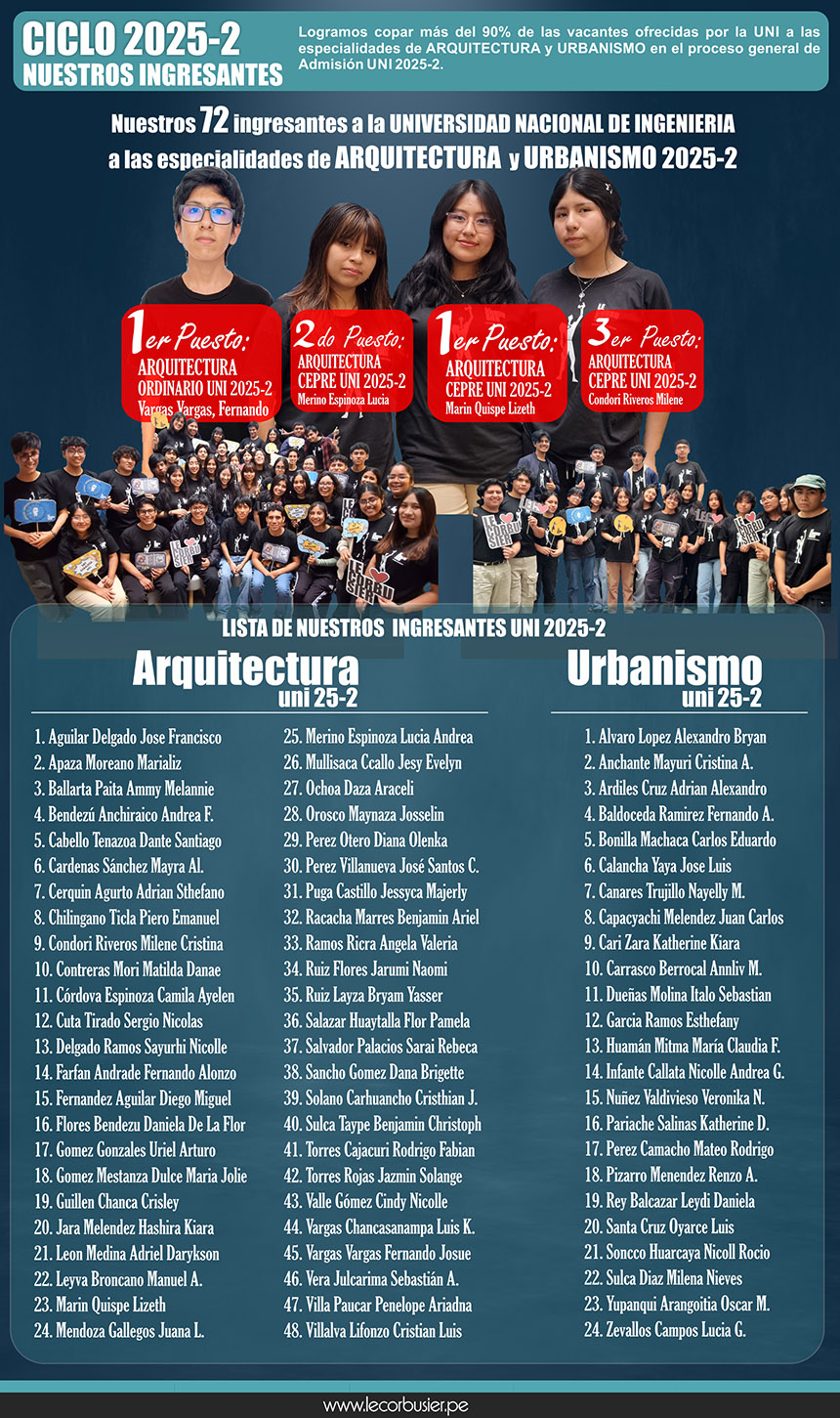 Nuestros alumnos lograron copar más del 80% del total de Vacantes que ofrece la UNI a la especialidad de Arquitectura